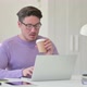 Creative Middle Aged Man with Laptop Drinking Coffee in Office