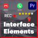 Miscellaneous Interface Elements is a pack of various animated motion graphics elements: geo icons, mobile call interface (button and slider iOS), bank cards, stars review, stop, play and record interface. Version for Premiere Pro.