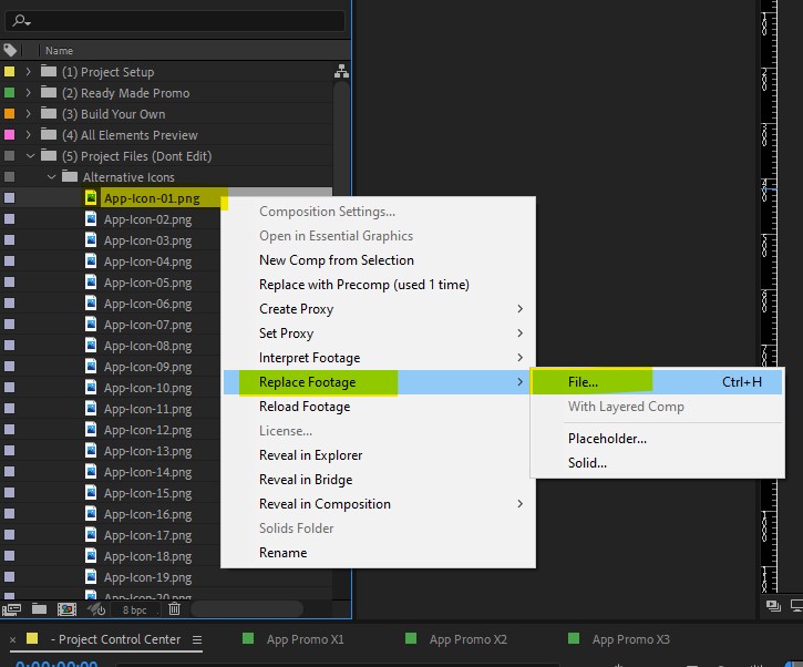 If you did extract the entire folder and files still didn’t link properly for some reasons, it’s a super easy fix. In the project panel simply select and right-click on one of the missing files, and then re-link it to file location on your computer. This will automatically re-link all the rest of the files.