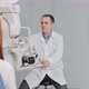 Optometrist using modern equipment to test visual acuity of female patient, woman reading eye chart through digital phoropter