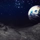 One perfectly seamlessly looped video animation clip: smooth moving camera above Moon surface with Eath and stars space background