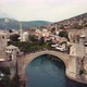 4K Footage Aerial View to the Old Bridge (Stari Most) in Mostar via the river Neretva, Bosnia and Herzegovina