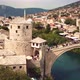 4K Footage Aerial View to the Old Bridge (Stari Most) in Mostar via the river Neretva, Bosnia and Herzegovina