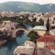 4K Footage Aerial View to the Old Bridge (Stari Most) in Mostar via the river Neretva, Bosnia and Herzegovina