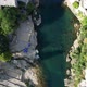 Drone view of the mosque and mostar city built on the side of the neretva river, drone view of the city’s settlement concept