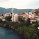 4K Footage Aerial View to the Old Bridge (Stari Most) in Mostar via the river Neretva, Bosnia and Herzegovina