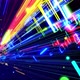 Motion graphic, data flow. Hi tech stream of datum, modern motion design vj loop. Wireframes of network rectangles or blocks with neon light, bright multicolor glow. Abstract hologram of microcircuit as concept of hi tech technology