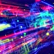 Motion graphic, data flow. Hi tech stream of datum, modern motion design vj loop. Wireframes of network rectangles or blocks with neon light, bright multicolor glow. Abstract hologram of microcircuit as concept of hi tech technology