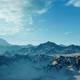 Panorama of snowy mountain range with rocks and stone peaks