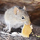Four-striped grass mouse (Rhabdomys pumilio) in Botswana, Africa finding food and hiding in rocks in high definition panning footage