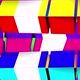 A looping set of rotating multi colored horizontal pillars with white tracing accents.