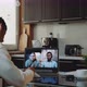 Multiracial colleagues working home on quarantine by making common video call by computer. Black man sitting in the kitchen and writing.
