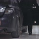 Group of men in black with unrecognizable faces standing at underground parking than breaking up. One of them getting into a black car, female hand sticking out of trunk. Headlights flashing on and the car of criminals taking off with a dead body. Footage in slow motion, perfect for movies and video clips as well as crime pieces.
