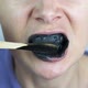 Natural toothpaste. A teen brush her teeth with eco black tooth paste in the bathroom.