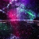 Nebula bridge travel passing clouds space reflection ground and particle glow up with shine flare in the nebula background seamless loop.