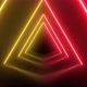 Abstract Triangle Tunnel with Light Lines Moving Fast. Different Colors Rainbow. Background Futuristic Tunnel with Neon Lights.