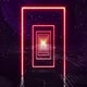 Neon Rectangle seamless loop animation passing rectangle neon light and star glow on refraction ground through the big moon.
