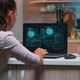 Nervous programmer hacker failing hacking company system from home at midnight. Professional woman writing a dangerous malware for cyber attacks using performance laptop late at night.