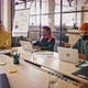New normal concept. Business colleauges in protective masks working on laptops in office