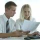 Young office workers being occupied with paperwork