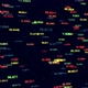 This stock motion graphics video shows colorful numerical values changing while moving on a black background.