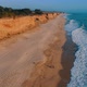 Aerial shot of ocean beach with sandy cliffs. Ethereal scene, perfect for WordPress backgrounds.