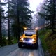 Extreme off road 4×4 muddy way through forest.