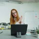 Online schooling, e-learning. Female teacher is holding online lesson, remotely, using tabletPC. live stream for students, from class. remote teaching, learning during coronavirus lockdown