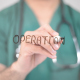 doctor, patient, nurse or Man writes and draws on transparent wall : Operation