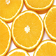 Rotation of orange slices over white background