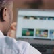 Over shoulder view of male unrecognizable african man american young web designer programmer freelancer look at laptop screen develop online project scroll internet website page chose modern interface. High quality 4k footage
