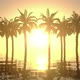 Palm trees at sunset with reflection in water.