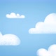 Colorful Toon clouds on the blue sky. Seamless Loop Cartoon Background. Flat clouds float on the blue sky. Background look like toon paper wallpaper clouds. Beautiful blue gradient, paper brush texture style. Happy cloudscape in flat style. Good for view kids – wind cloudy weather.