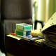 A pile of newspaper and magazines on the table in empty office. Disorganized working place close up, detailed clip.
