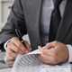 Businessman looking through documents and making notes