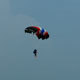 Skydiver plans in the sky. He chooses a place to land. With the help of a sling directs its movement in the right direction.
