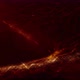 a dark, cosmic scene filled with swirling dust and gas. There is a bright, golden beam of light cutting through the darkness, creating a sense of drama and mystery.