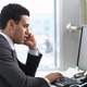 Handsome businessman receiving a phone call while working in front of the pc