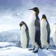 Emperor penguins stand on a huge iceberg and admire the winter polar landscape. Huge high glaciers in winter natural conditions. Arctic winter landscape. The loopable animation is perfect for winter, natural and animal backgrounds.