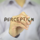 Man, Businessman, entrepreneur, stock trader, analyst or banker writes on transparent wall : Perception