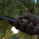 A man using touch screen on smartphone at park. Full HD 0:10Sec