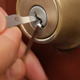 A person lock-picks a deadbolt.