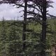 Drone view of green pine tree standing alone, pine tree overhead, drone view of coniferous green pine forest, images of green woodland inside the mountain
