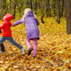 Four little friends playing tag in the forest
