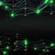 Plexus of glass spheres on the background, some have a green middle.
