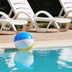 Clear blue swimming pool close up in resort.