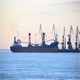 The ship and the frozen sea. A sunset over the sea.