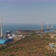 power station by sea with smoking pipes, paiton java, indonesia. aerial view power plant in asia.