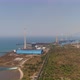 power station by sea with smoking pipes, paiton java, indonesia. aerial view power plant in asia.