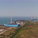 power station by sea with smoking pipes, paiton java, indonesia. aerial view power plant in asia.